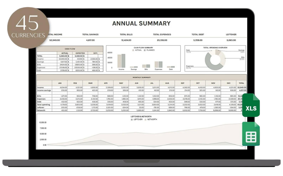 We've enhanced the bundle with tools designed to simplify your budgeting! Our new template not only provides an instant monthly overview but also automatically converts this into an annual summary. Now, you can track your budget throughout the year effortlessly and efficiently. Value: $50